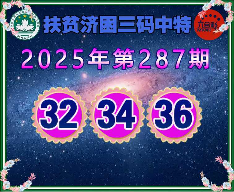 287期:『扶贫济困』 🥽三码中特🥽【32.34.36】开:34准